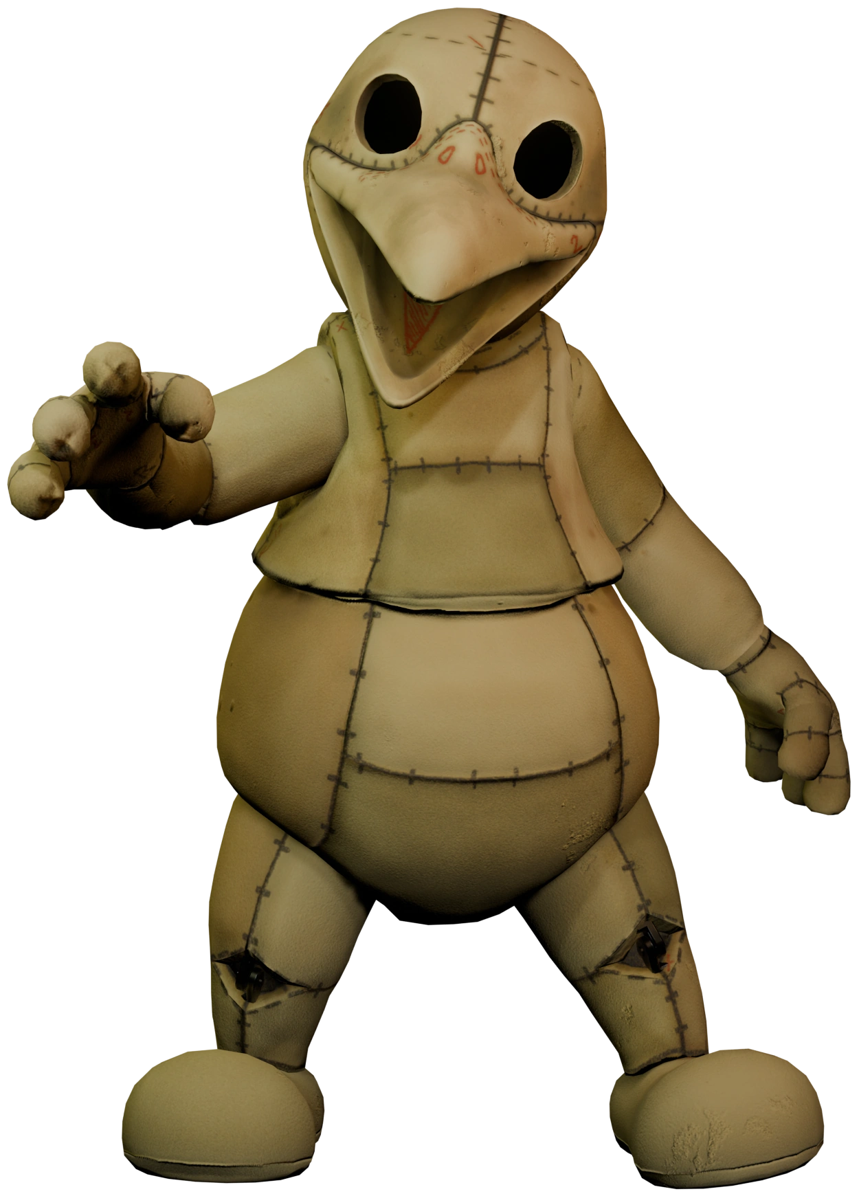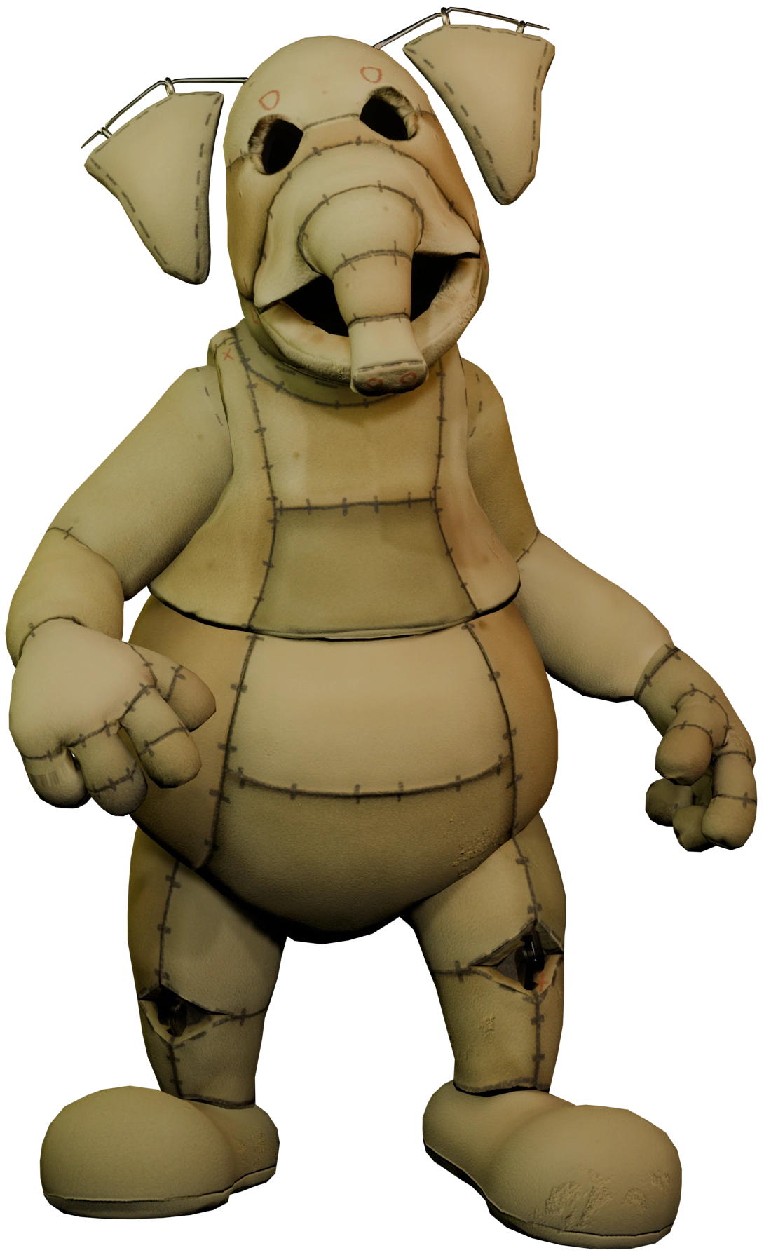 The Elephant mascot is the first mascot the player encounters in Secret of the Mimic, and one of the three returning ones from RUIN. In RUIN, the costume does nothing more than hang in a closet inside the room the Mimic is sealed in. In Secret of the Mimic, however, the costume plays a slightly more notable role than most, being scripted to always be the very first mascot costume encountered, with it stalking the player when they turn on the power before it breaks out of a crate in the player's way, being the first enemy in the game.