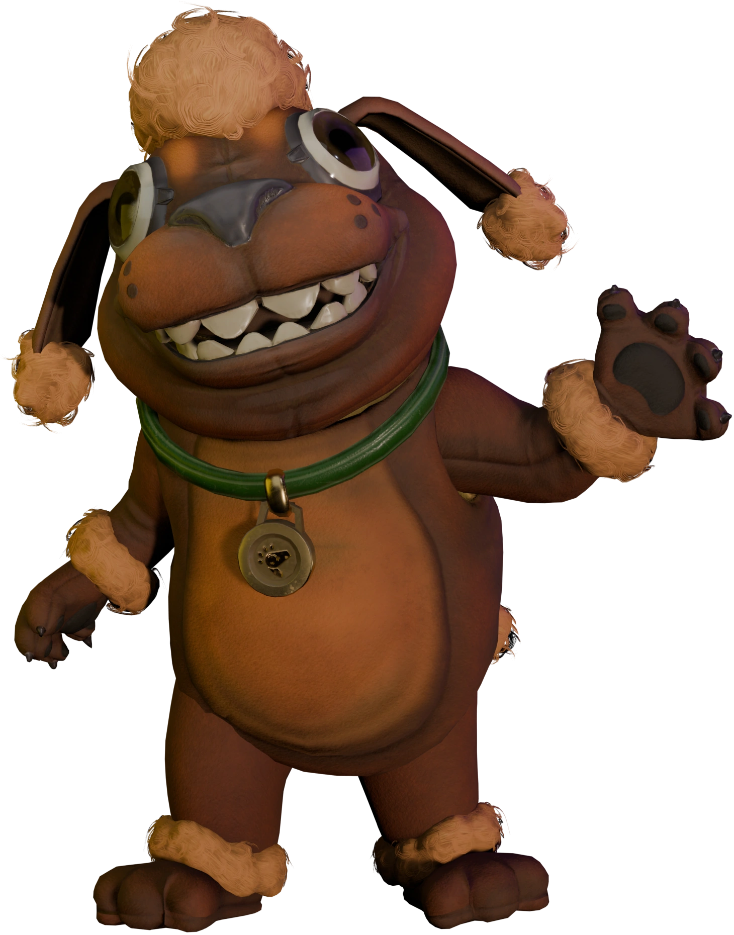 - Birthday Puppy's pajama onesie variant has a notable error in its textures, lacking the stripes on the ears and having them be plain yellow.