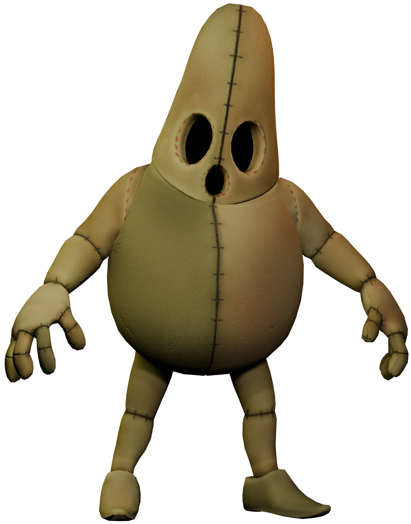 Finally, the Mycellium Man's foam variant follows the same general pattern of all foam suits; being in the general shape of the suit made of stitched together foam pieces that have yellowed over time. The Mycellium Man's foam suit has the most drastic changes out of any foam suits, lacking the character's gloves, scar, and mushroom cap, making them appear far less like their finished variant than most of the other suits.