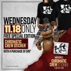 A small merch wave was released on October 12th. It included some miscellaneous merchandise, including shirts, posters, stickers and more. It had 4 different collections; the Wasteland Bundle, the Inferno Bundle, the Retro Glitch Collection and the Chromatic Crew Collection. On November 18th, they returned to this collection to add a sticker to the Chromatic Crew collection. Later on, a mug was added to the Sizzling Summer collection along with some Christmas themed merchandise.
