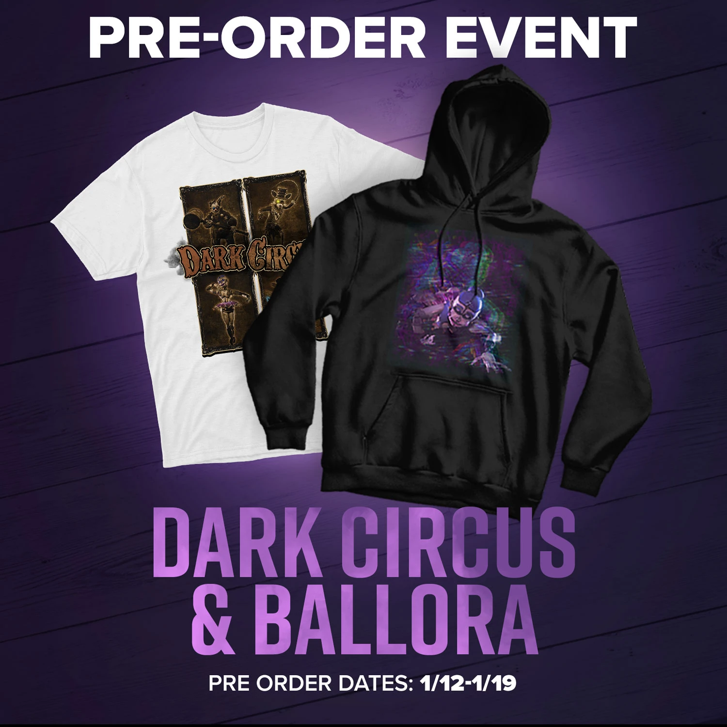 As the first merch release of 2021, Illumix released some merchandise for the Dark Circus event, featuring many shirts, hoodies & stickers themed after the Dark Circus. As well as this, two simple & unrelated hoodies were released, being just red or blue with the game's logo.