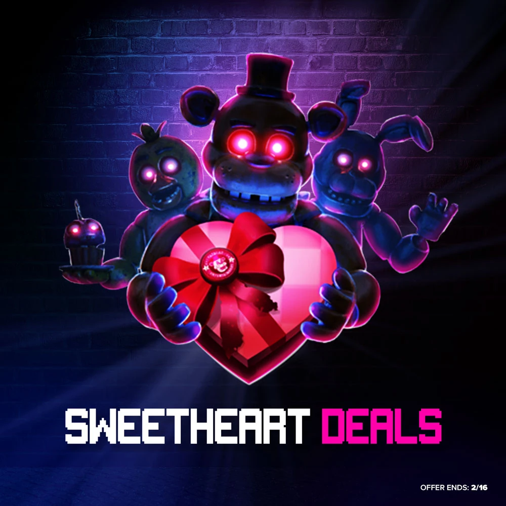 For Valentines Day 2021, Illumix released a small wave of merch based off the new skins and the old promotional art for Valentines day from when Toy Freddy first released. This line of merch is called the "Sweetheart Deals" line. This wave of merch was also released alongside a FNaF AR themed Water Bottle.